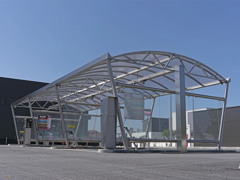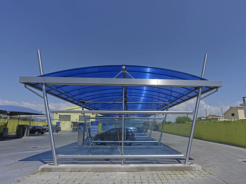Avec 8300 mm de bandeau à bandeau, cet abri est idéal pour les centres de lavage recherchant une solution différenciante et de haute qualité.