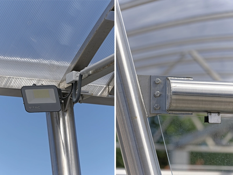 La couverture en polycarbonate translucide de 10 mm assure une excellente luminosité naturelle et un environnement confortable pour l’utilisateur.